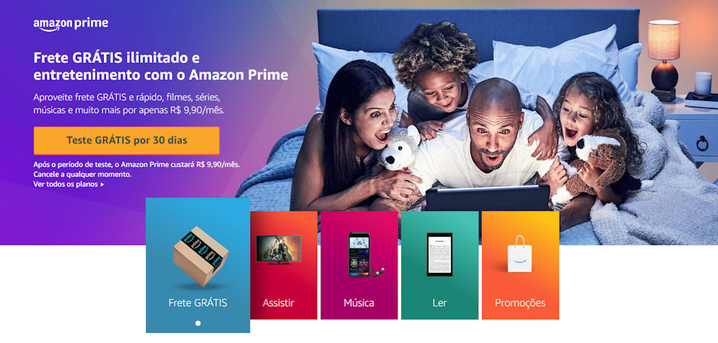 Se não conhece o serviço, basta acessa o Amazon Prime e aperte em “Teste GRÁTIS por 30 dias”, você terá 30 dias gratuitos e depois irá pagar apenas R$9.90 por mês, o serviço inclusive o serviço de vídeo, de música, livros, entregas no site com frete grátis e promoções especiais.