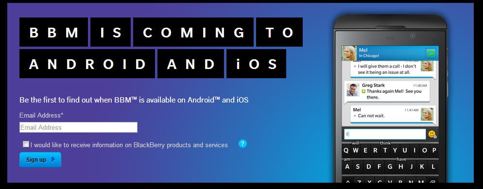 BlackBerry ainda não deu uma data específica para o lançamento do aplicativo BBM para Android e nem iOS, mas será lançado em algum dia no terceiro trimestre desse ano e como já falamos aos poucos ganhará novas funções, o aplicativo será totalmente grátis.