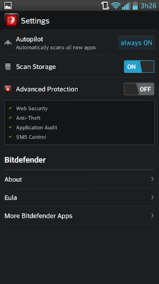 O Bitdefender Antivirus Free é um aplicativo que não necessita de nenhum tipo de configuração depois de iniciar o mesmo já começa a funcionar em segundo plano protegendo todo o sistema incluindo o cartão de memória.