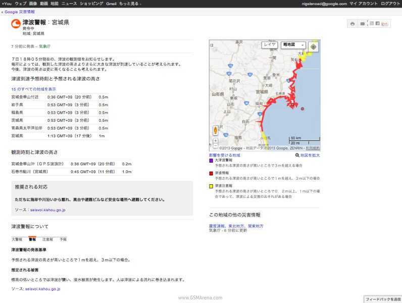 Pensando nisso o Google adicionou informações no seu aplicativos Google Now, Google Maps e nas buscas feitas no site do Google ou no Android, a intenção é ajudar e informar rapidamente as pessoas em caso de um terremoto ou tsunami no Japão antes que o mesmo cause maiores danos ou vidas sejam perdidas.