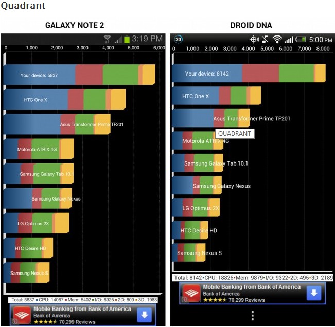No final são dois grandes e potentes aparelhos, não existe diferencia estrondosa entre os dois aparelhos, o HTC Droid DNA aparece um pouco na frente do Galaxy Note 2, mas como sempre lembramos que benchmark nunca representa o uso real dos dispositivos no dia-a-dia de um usuário.