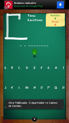 Ao errar ou acertar a palavra podemos escolher uma nova palavra no mesmo tema, mudar de tema e até zera as estatísticas de erros e acertos.