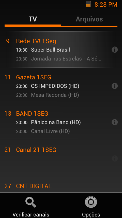 Ao entra no aplicativo por padrão começará as buscas por canais digitais, lembrando que o aparelho encontra somente canais com tecnologia 1SEG, após encontrar os canais você já pode começar a assistir.