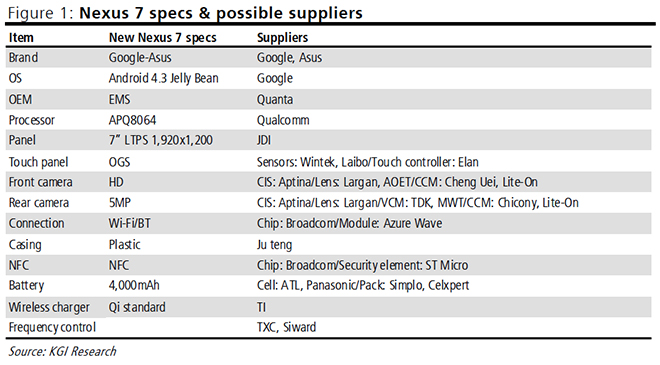 Ainda não se sabe o nome real do produto mas os rumores chamam o novo aparelho de “New Nexus 7”, a memória interna e nem a RAM são citadas, mas devemos esperar algo em torno de 16GB para armazenamento e 2GB para memória RAM do aparelho.